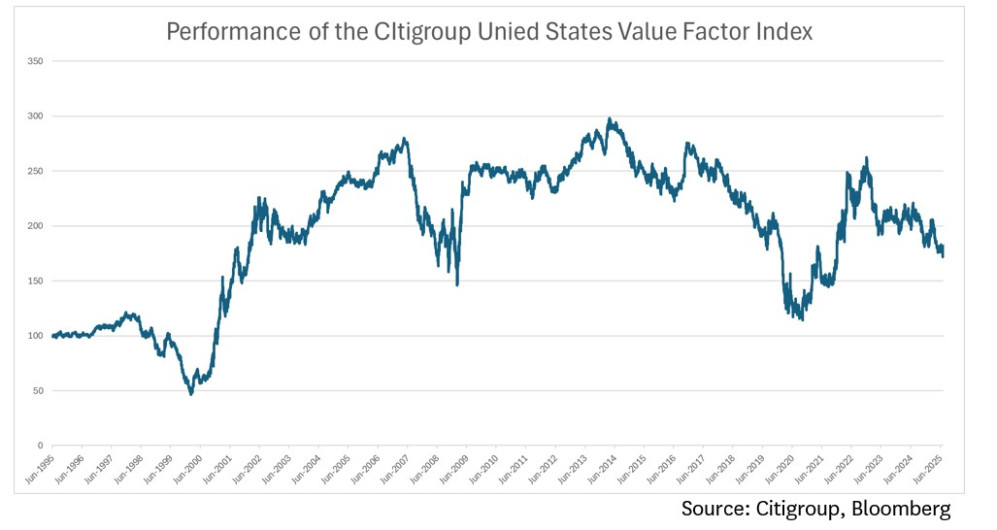 However, the performance of different investment styles goes through cycles in the equity market, which often seem to last about 5 to 7 years. For example, value investing in the United States did poorly between 1995 and 2000, produced spectacular returns between 2000 and early 2007, crashed between early 2007 and early 2009, performed well between early 2009 and early 2014, did appallingly between early 2014 and late 2020, did extremely well from late 2020 to the end of 2022, and have been lagging since the end of 2022. A quantitative fund that had been back-testing how value would had historically performed would have seen the worst results in 2000, 2009, and 2020 (just prior to the periods where value did well) and would have seen the best (most validating) results in 2006 and 2014 (just before it did particularly poorly).